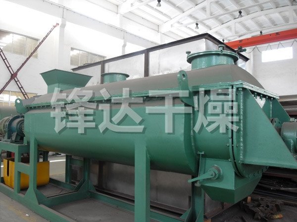 空心轴上密集排列着楔型中空浆叶,热介质经空心轴流经浆叶。单位有效容积内传热面积很大,热介质温度从-40℃到320℃,可以是水蒸汽,也可以是液体型:如热水、导热油等。间接传导加热,没有携带空气带走热量,热量均用来加热物料。热量损失仅为通过器体保温层向环境的散热。楔型浆叶传热面具有自清洁功能。物料颗粒与楔型面的相对运动产生洗刷作用,能够洗刷掉楔型面上附着物料,使运转中一直保持着清洁的传热面。浆叶干燥机的壳体为Ω型,壳体内一般安排二到四根空心搅拌轴。壳体有密封端盖与上盖,防止物料粉尘外泄而充分发挥作用。